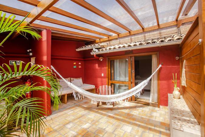 Possui varanda interna com rede e também cama casal Queen Size e uma cama de solteiro.